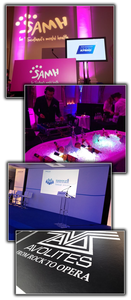 LightingLighting offers powerful control over the mood and focus at your event. A combination of different lighting technologies will deliver a variety of dazzling, memorable effects.Lighting can be complex to specify so please talk to us about the effects being sought and we will be happy to advise on how to achieve these. Depending on the scale of the requirement we often recommend a site survey and risk assessment be carried out in advance by one of our Project Managers. As a rough guide, when planning the lighting of your event, control, position and power are the three key considerations: Control All lighting needs to be controlled, even if you just want it to be switched on and off. What level of control you need is determined by the effect you are going for and the types of lighting fixtures being used. If the requirement is a straightforward fade in and out, the basic type of Zero88 Level 6 controller will suffice. A large event needing pre-programmed lighting states with scene changes and light chases, all with a large number of "intelligent" and traditional lighting fixtures, will need a more sophisticated lighting desk such as an Avo-lite Pearl. Position Different lighting fixtures can be positioned in different ways. Where fixtures need to be raised, Manfrotto lighting stands can be used to provide stable support with variable height adjustment. Larger venues are sometimes equipped with anchor points in the ceiling designed to take the weight of aluminium trussing and the fixtures suspended from it. Power The more lighting used, the more power that is required. A simple lighting configuration can run safely from a standard 13A mains outlet. For larger setups, some venues have high voltage power supplies – 32A 3 phase for example – but where insufficient power is available, an allowance will need to be made for external generator(s). ![]() |